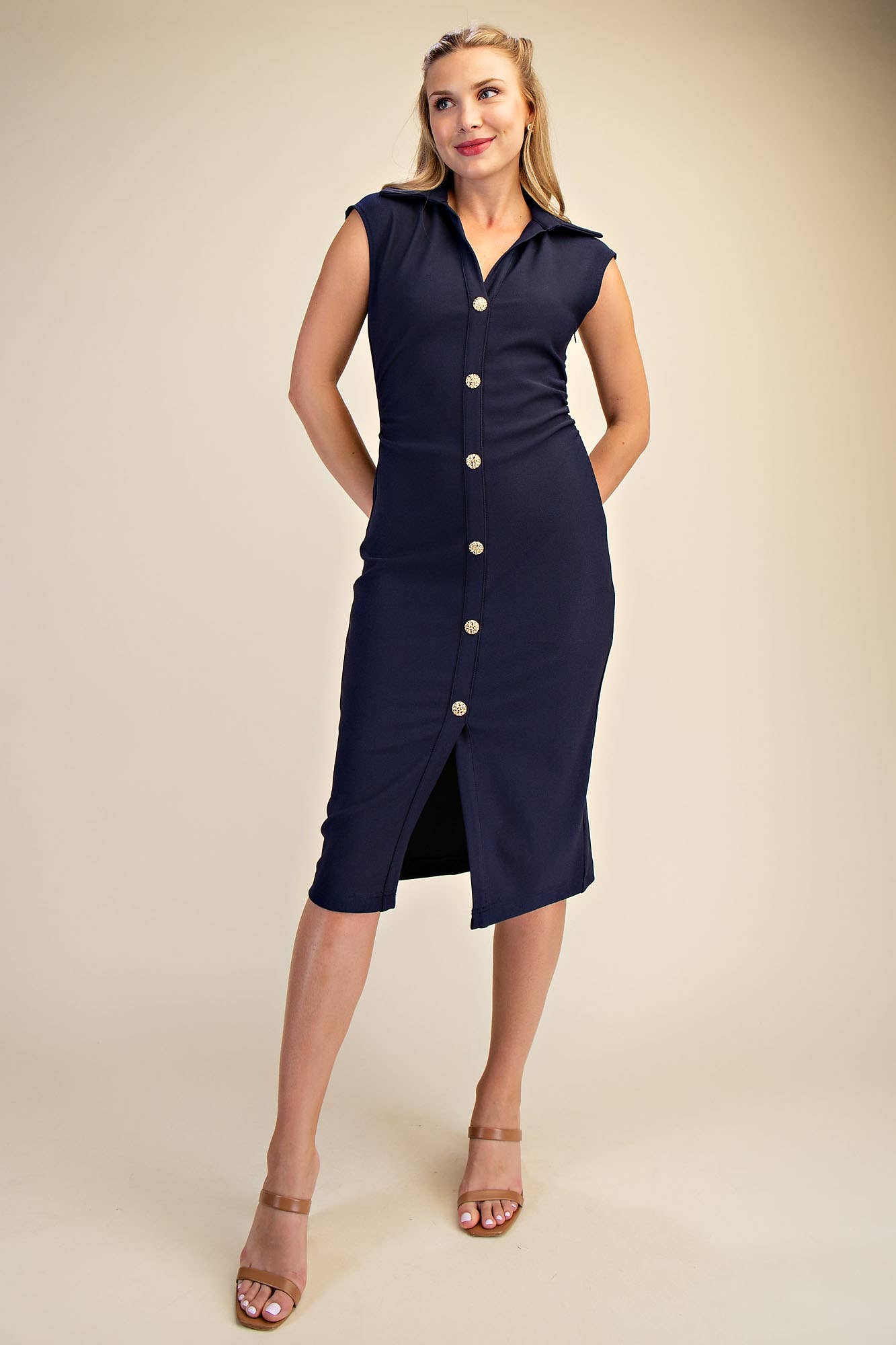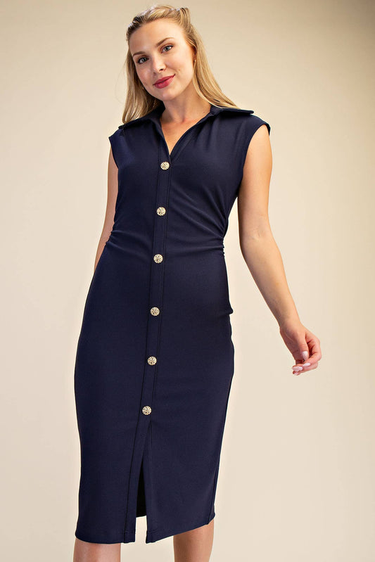 V-Neck Midi Shirt Dress - Navy