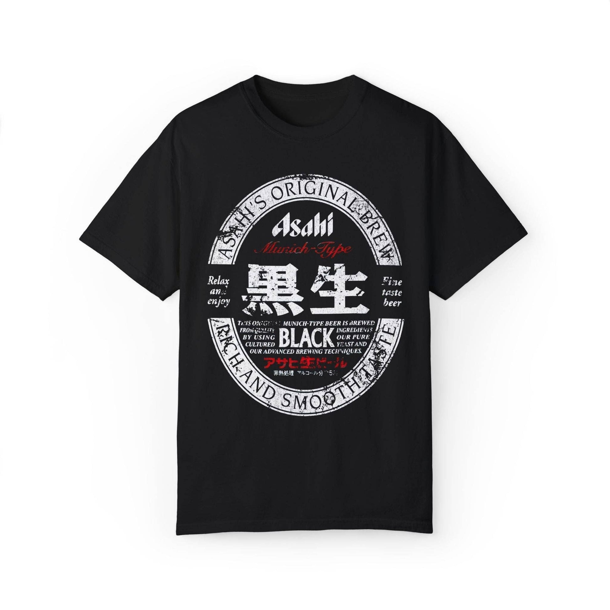 Distressed Vintage Asahi Japanese Beer Logo T-shirt, suitable for fans of retro graphic tees. This unique gift gives off a retro vibe and is perfect for casual wear. Ideal for adults who appreciate vintage designs. Relevant for beer enthusiasts, Japan culture lovers, and those celebrating birthdays or special occasions.