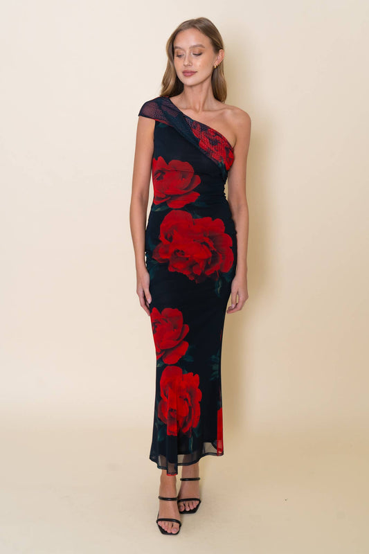 Chic Rose Cascade Maxi Dress